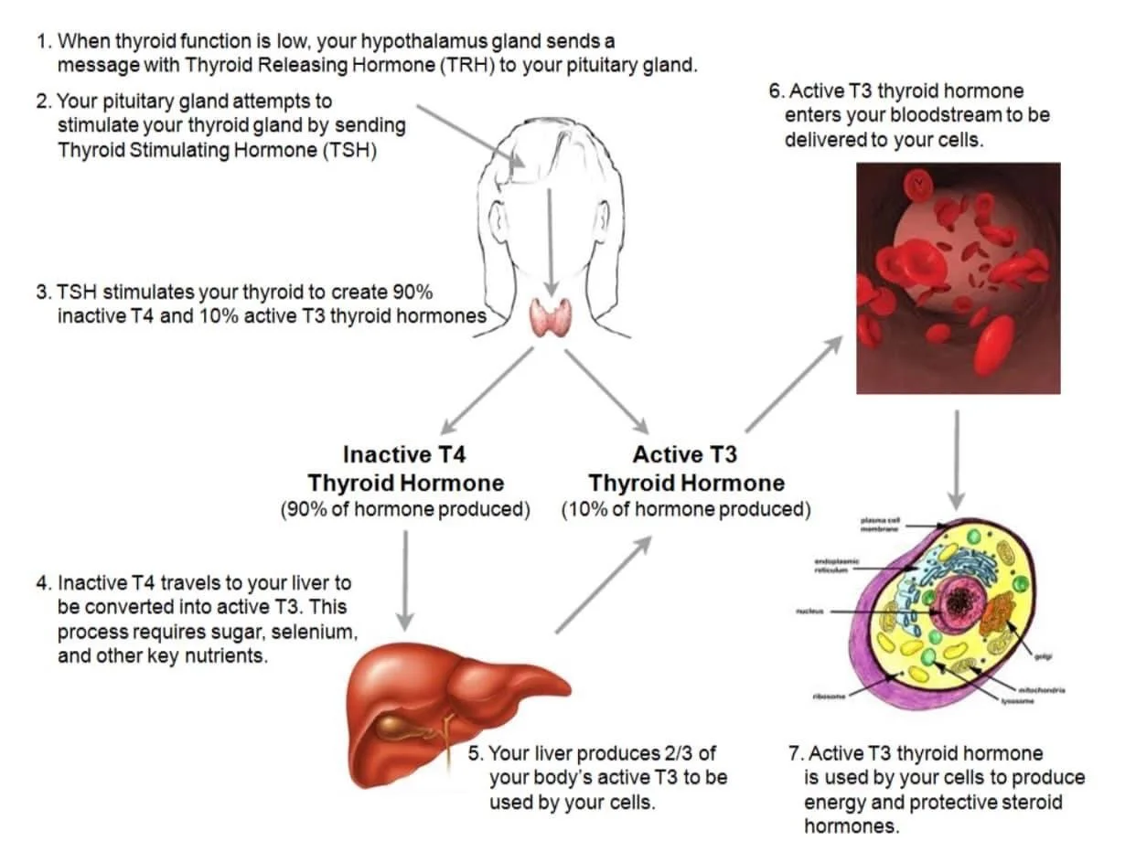 The problem with these approaches is that they don’t account for the health and function of your Thyroid Hormone Pathway which becomes blocked in hypothyroidism and Hashimoto’s thyroiditis, preventing your body from being able to use thyroid hormone efficiently.